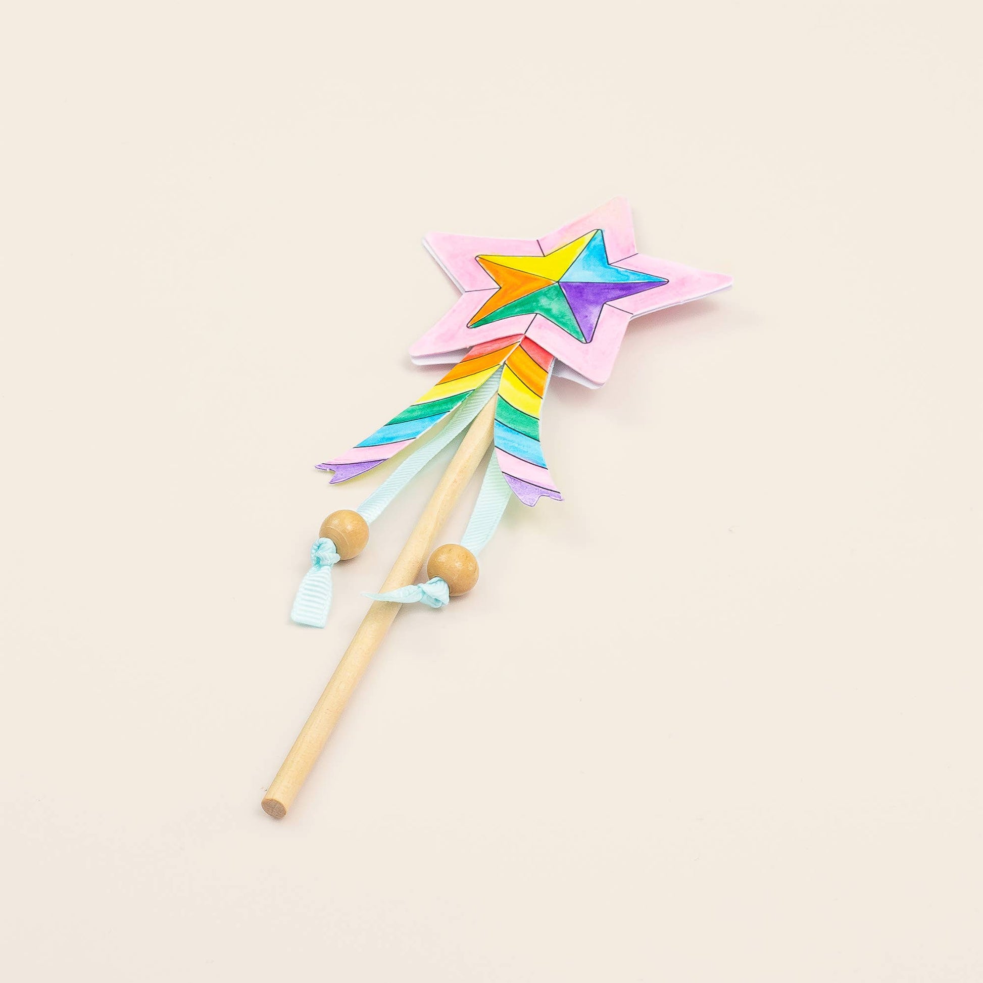 Children can decorate the star and ribbon cut-outs with their own patterns, assemble the wand using the wooden stick and ribbons, and add beads for extra sparkle. Lovingly assembled by hand, this kit encourages creativity, imaginative play, and fine motor skill development.