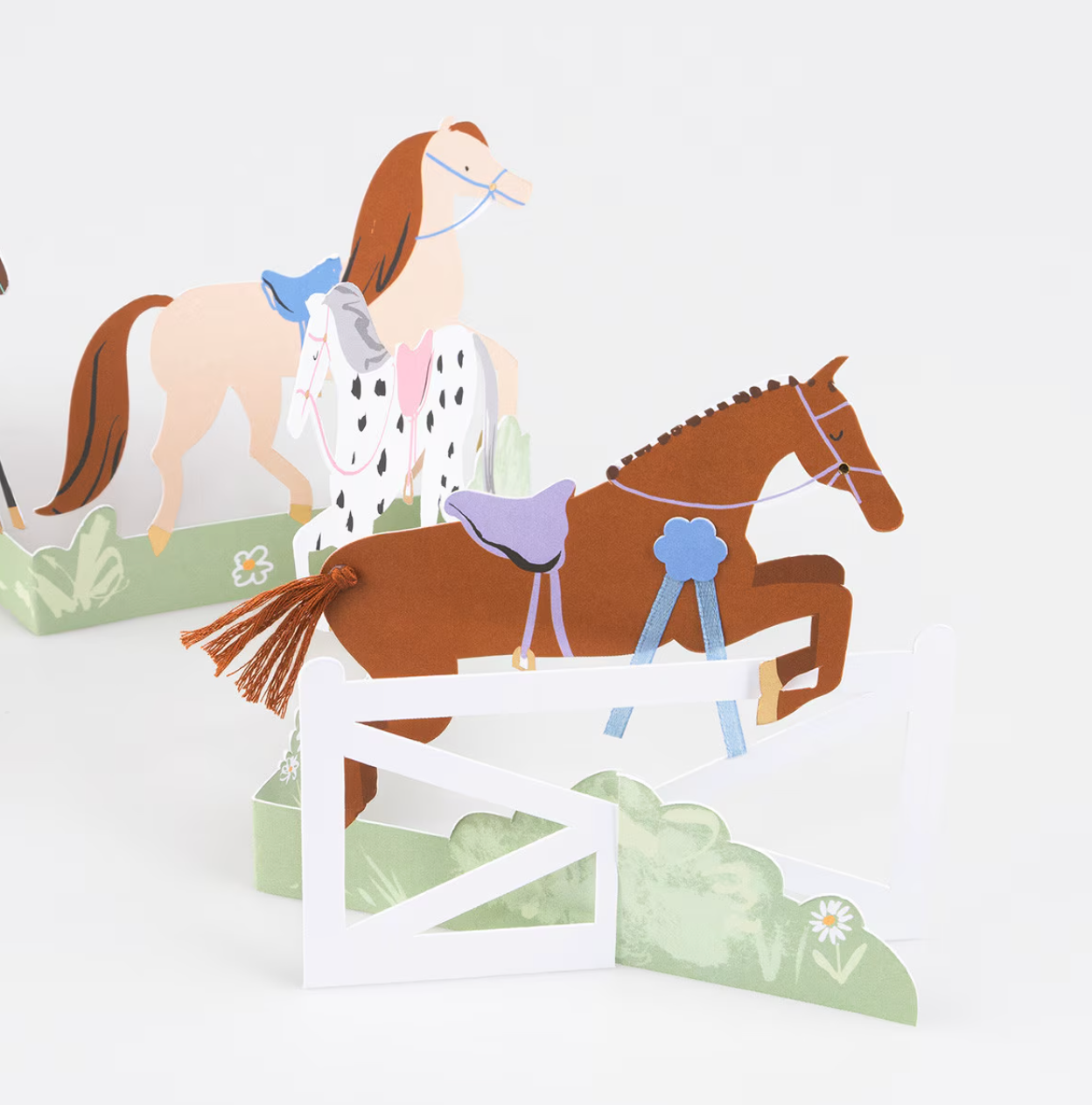 Let this card gallop over birthday wishes to a special someone who adores horses. The extra attention to details – rosette ribbons, tassel tails and a jump – are sure to delight.