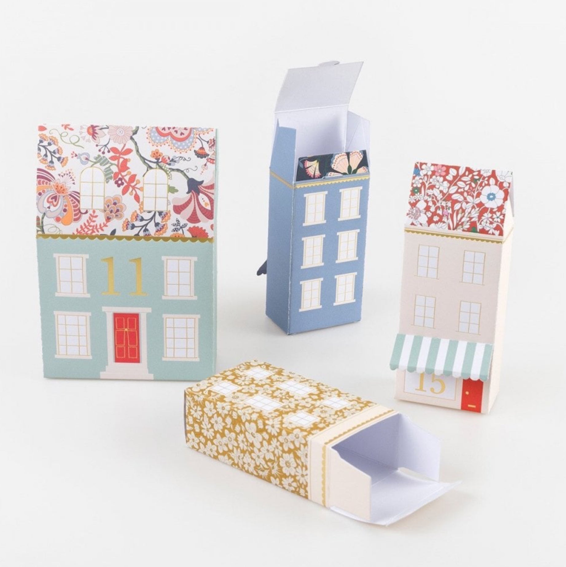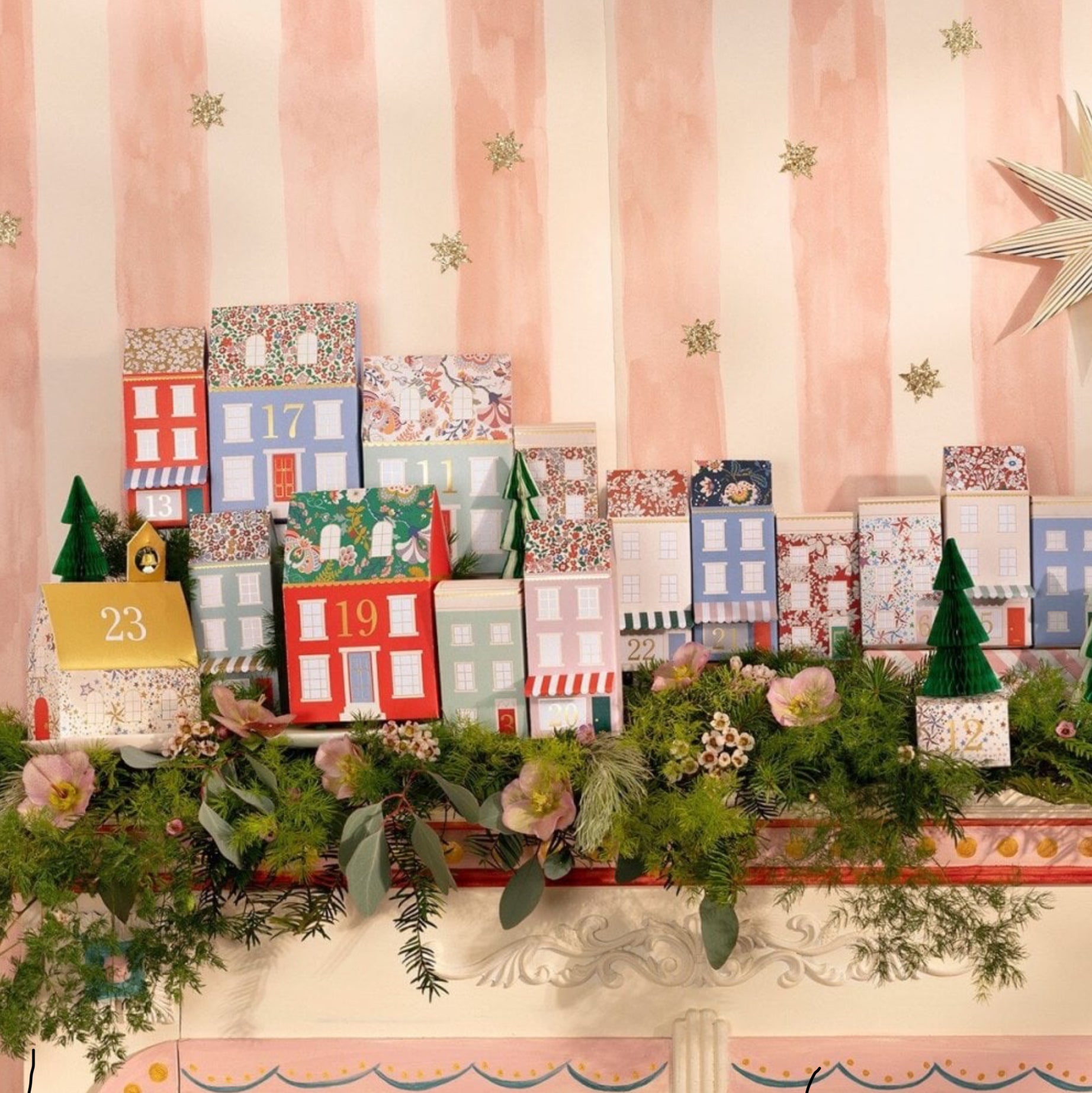 Meri Meri have collaborated with Liberty to bring you the ultimate Christmas advent calendar, designed to decorate, delight, and make the countdown to Christmas extra special. This enchanting village of paper box buildings, featuring a joyful mix of Liberty floral and star prints, will create a stunning festive display. Perfect on a table or mantel, or in an unlit fireplace. Extra embellishments make it even more magical, including a little jingling bell in the church tower, honeycomb tissue paper trees and stylish matt gold foil details. Each box is spacious enough to hold your favourite little surprises - think toys, stationery, jewellery, accessories and more. And, you can reuse them year after year, making the tradition even more meaningful for your family.