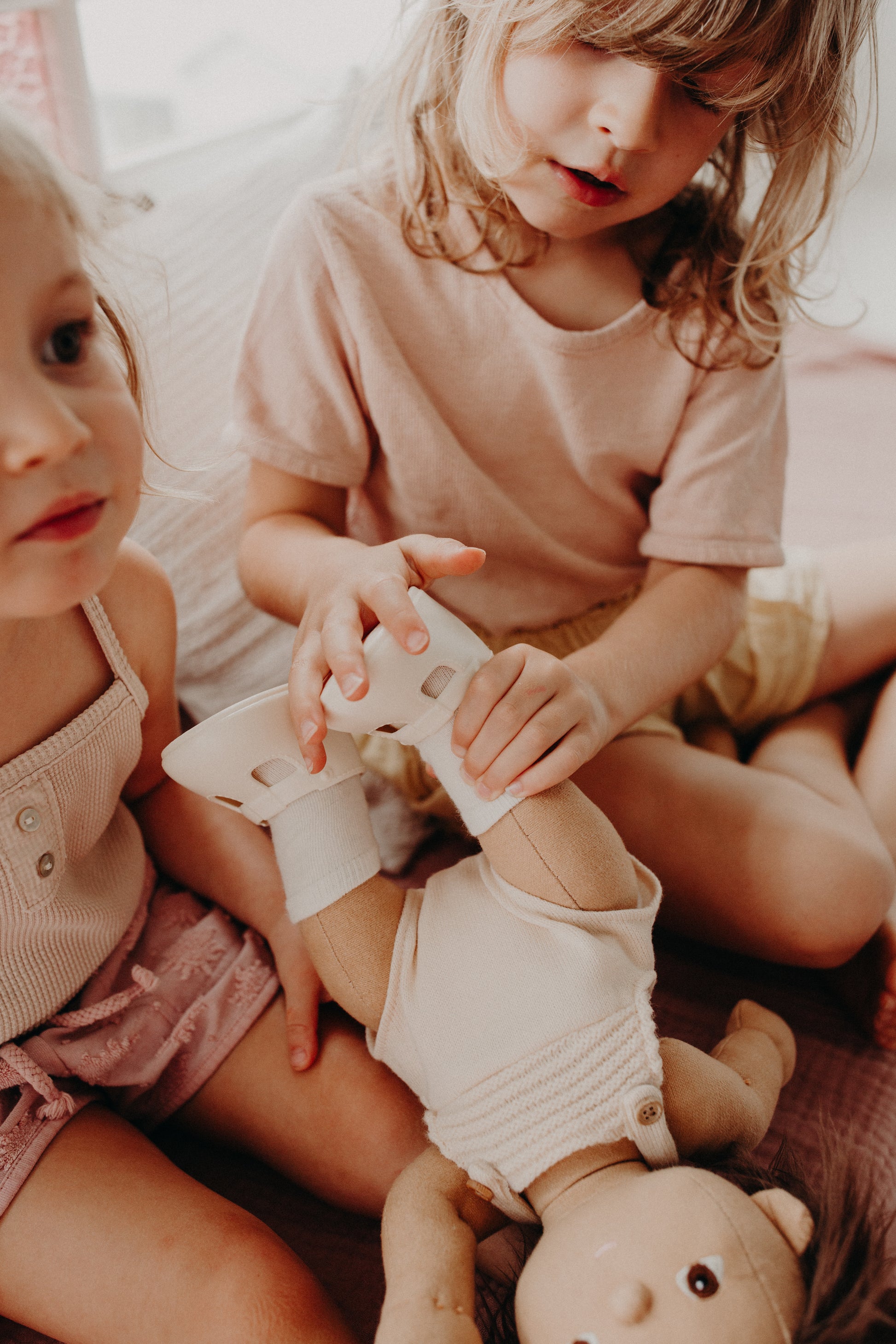 A pair of shoes for every outfit! These Dinkum Doll shoes add some extra style to your doll toy with a soft cream colour.
