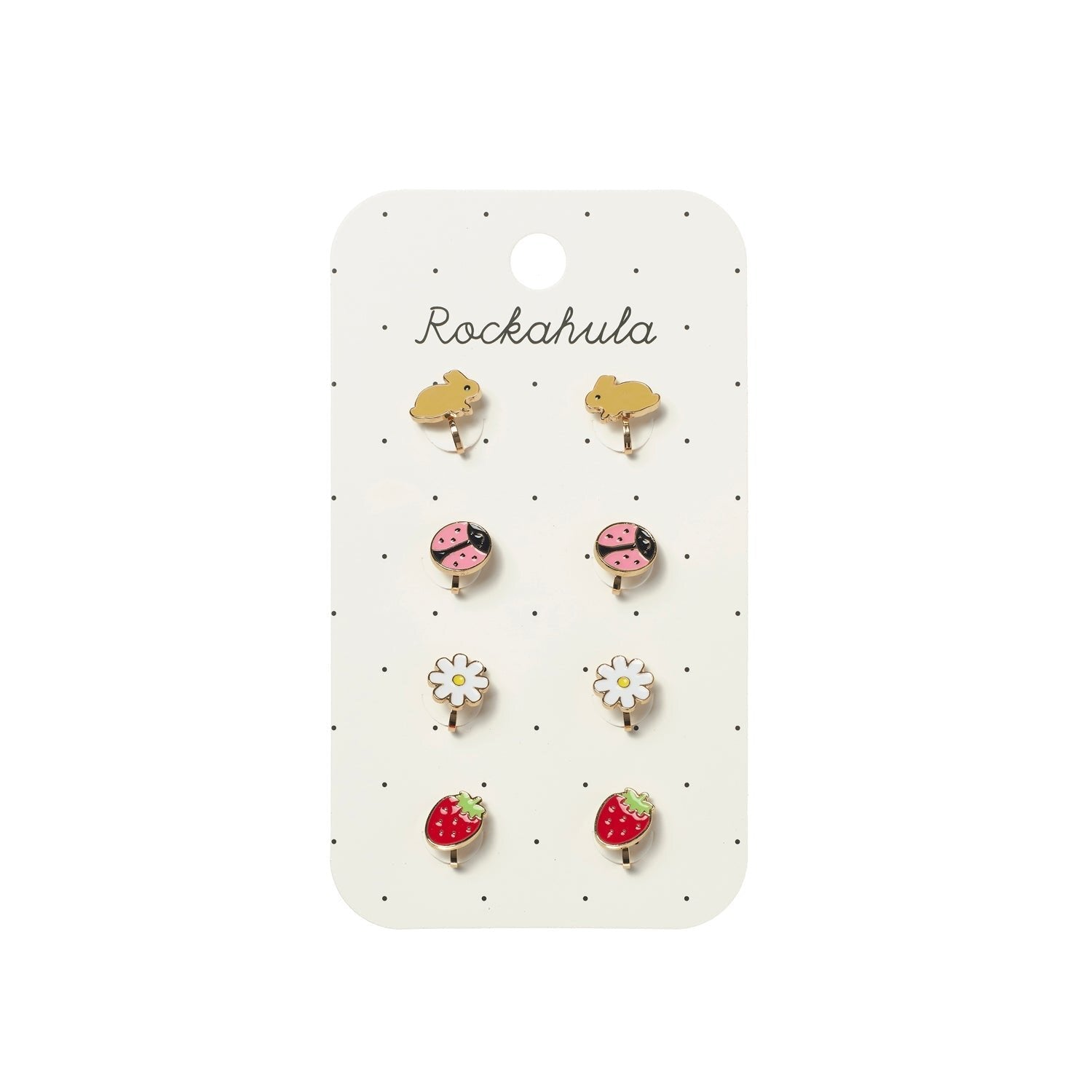 Add a touch of springtime fun to any outfit with the Spring Garden Clip On Earrings. Part of the Rockahula Kids SS26 collection, this adorable four-pack features playful spring motifs including bunnies, ladybirds, daisies, and juicy strawberries—all set on gentle metal clips designed for little ears.