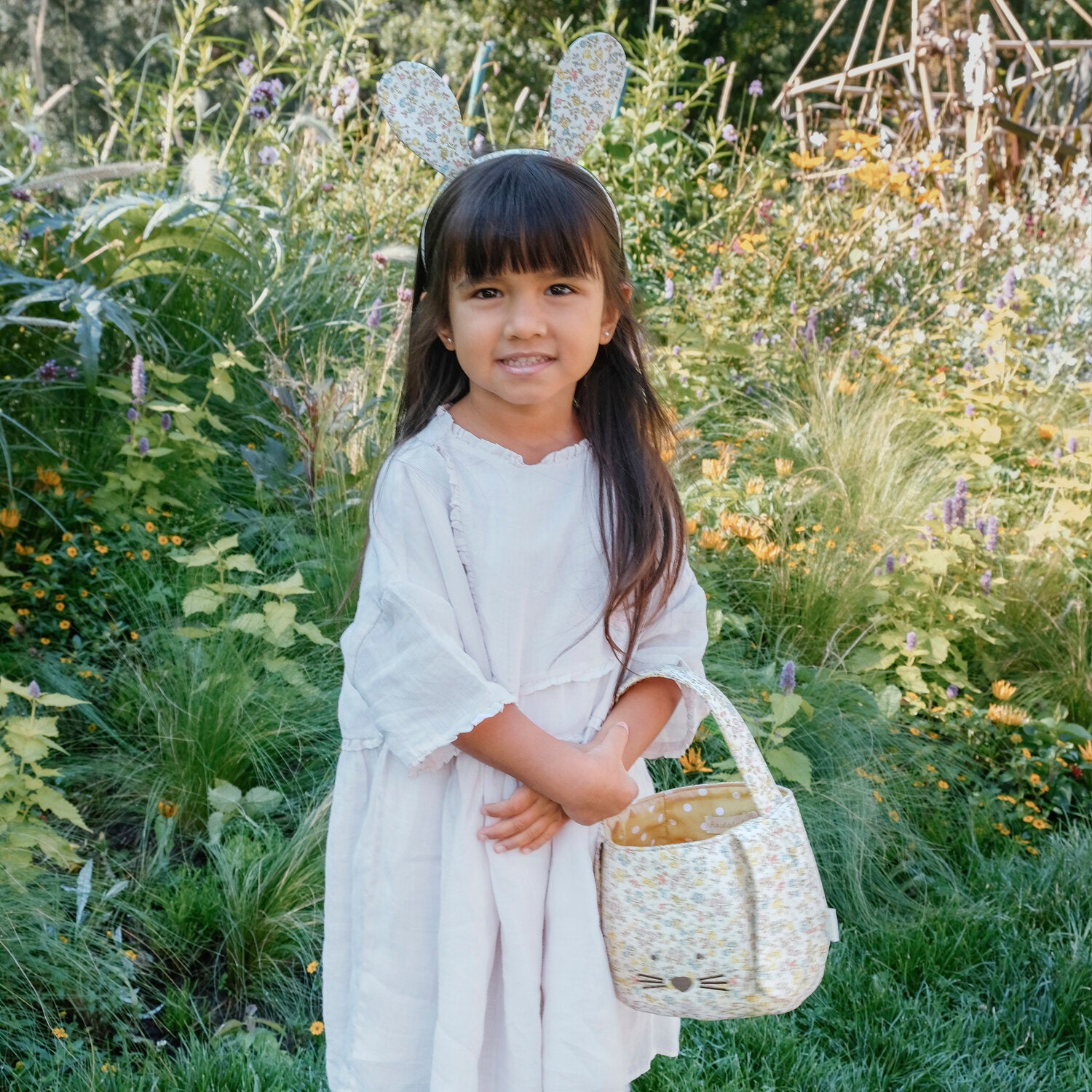 • Features two petal-print bunny ears for playful charm