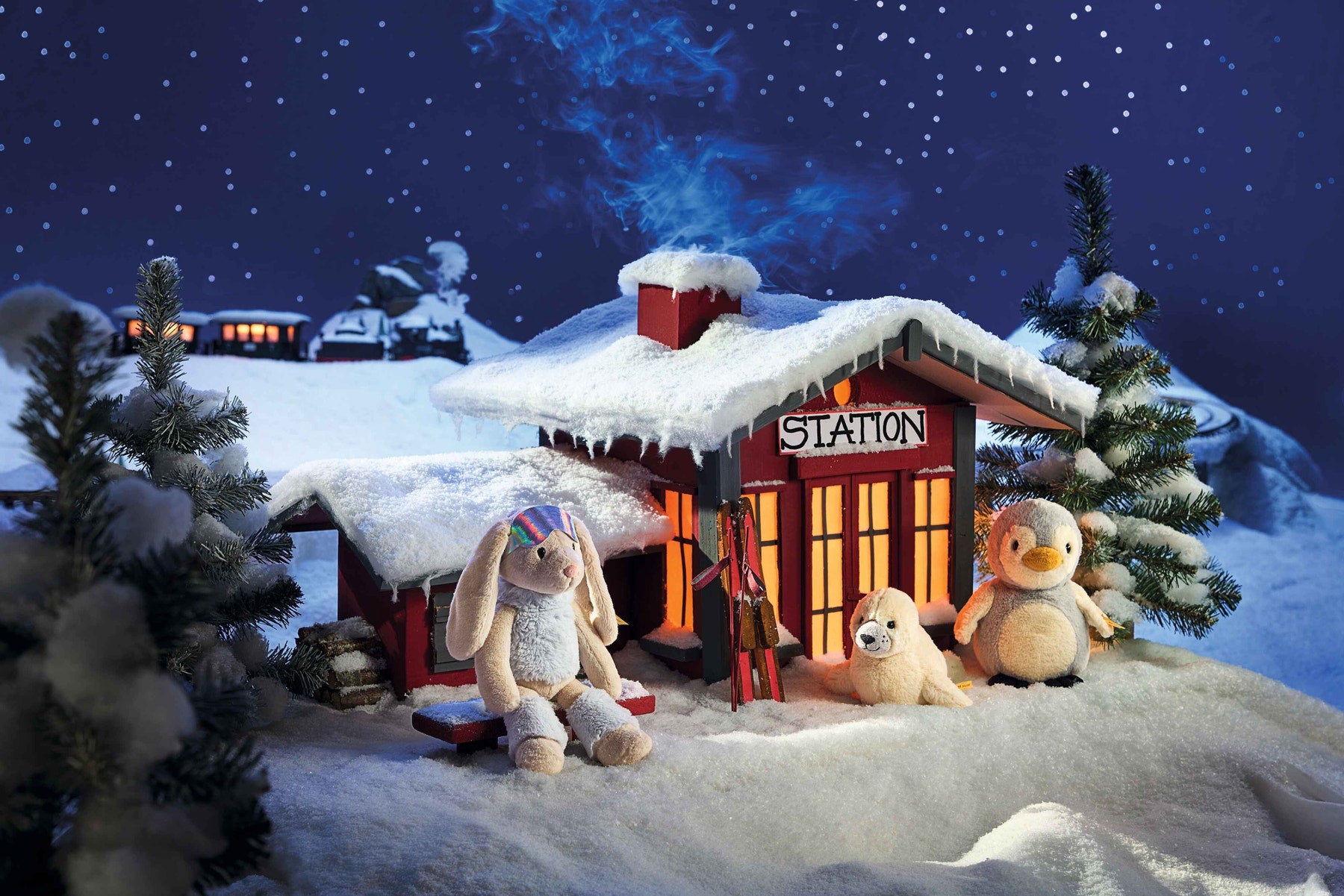 Hoppie’s stylish ski outfit is firmly attached to her soft plush body, so she’s always ready for action. Designed with a doll-like dangling body and weight bags filled with granules in her arms, feet, and torso, Hoppie stays perfectly balanced whether skiing down the piste or waving hello. Her reflective ski goggles keep her eyes safe and can be casually slid up for après-ski fun. After a long day on the slopes, this cuddly plush bunny curls up tired but happy.